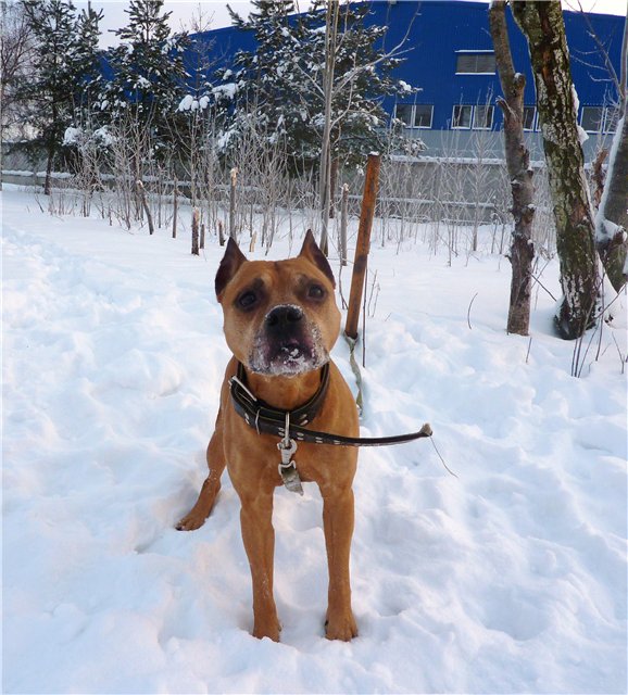 Виталий посмотрите пожалуйста, может занимался товарищ этот у вас? 28 декабря найден стаф на платформе Красногорская.Сидел там сутки и никуда не уходил((( Парень сейчас в Шереметьево на передержке. Собака не простая, командам обучен и кажется поставлен на охрану. Возраст примерно 3-4 года. Здоров. Ищет старых или новых хозяев.