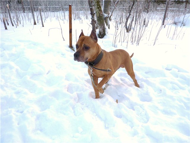 Виталий посмотрите пожалуйста, может занимался товарищ этот у вас? 28 декабря найден стаф на платформе Красногорская.Сидел там сутки и никуда не уходил((( Парень сейчас в Шереметьево на передержке. Собака не простая, командам обучен и кажется поставлен на охрану. Возраст примерно 3-4 года. Здоров. Ищет старых или новых хозяев.