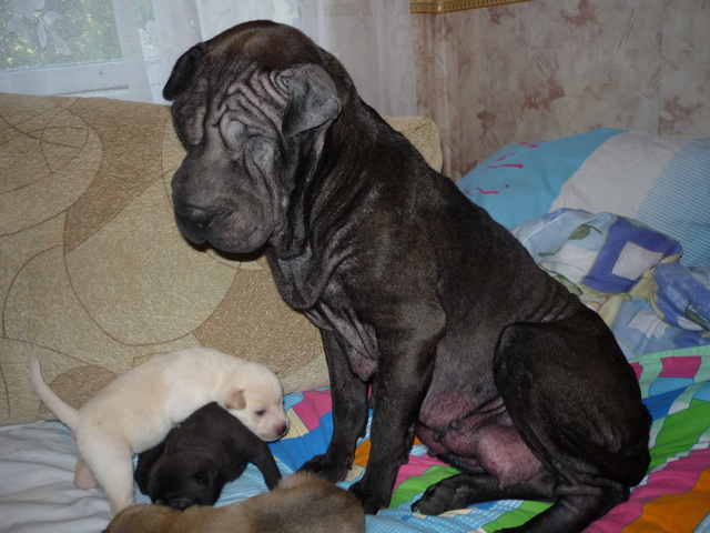 Неделю назад позвонил мужчина. И так любезно, даже заискивающе стал со мной разговаривать. Говорит, помогите, пожалуйста, щеночков пристроить. Расспрашиваю. Оказалось, шарпейка двух с половиной лет родила от дворика 6х щенят. Первый диагноз- кретин. Дальше хуже. Объясняю, что мы найдем им передержку, будем пристраивать, но это не ранее, когда они будут самостоятельно кушать, чтобы от мамки не отрывать. На что мне дядя говорит, маму тоже. Я переспрашиваю, ЧТО , собака вам тоже уже не нужна. Переубеждать он меня не стал. Второй диагноз- козел. Нашла передержку на следующий день. Перезваниваю, а он мне говорит, спасибо за беспокойство, все хорошо. Мы их в питомник пристроили. Я в шоке. Понимаю, что ни о каком питомнике речи быть не может. Начинаю расспрашивать. Он начинает нервничать и говорит, жена этим занималась. Она сейчас на работе, вечером Вам перезвонит… Вечер- звонков нет. Его тел не отвечает. Весь след день звонила- без результатов. Диагноз третий- урод. Правдами и неправдами мы нашли эту собаку и щенков. У одной женщины. Она оказалась знакомой этих людей, которая на время собаку приютила, поскольку ее выбрасывали на улицу. Дети- очарование, мамка- породистая и красивая, только вся измученная, исхудавшая и облезлая. Сейчас пытаемся устроить их судьбу.