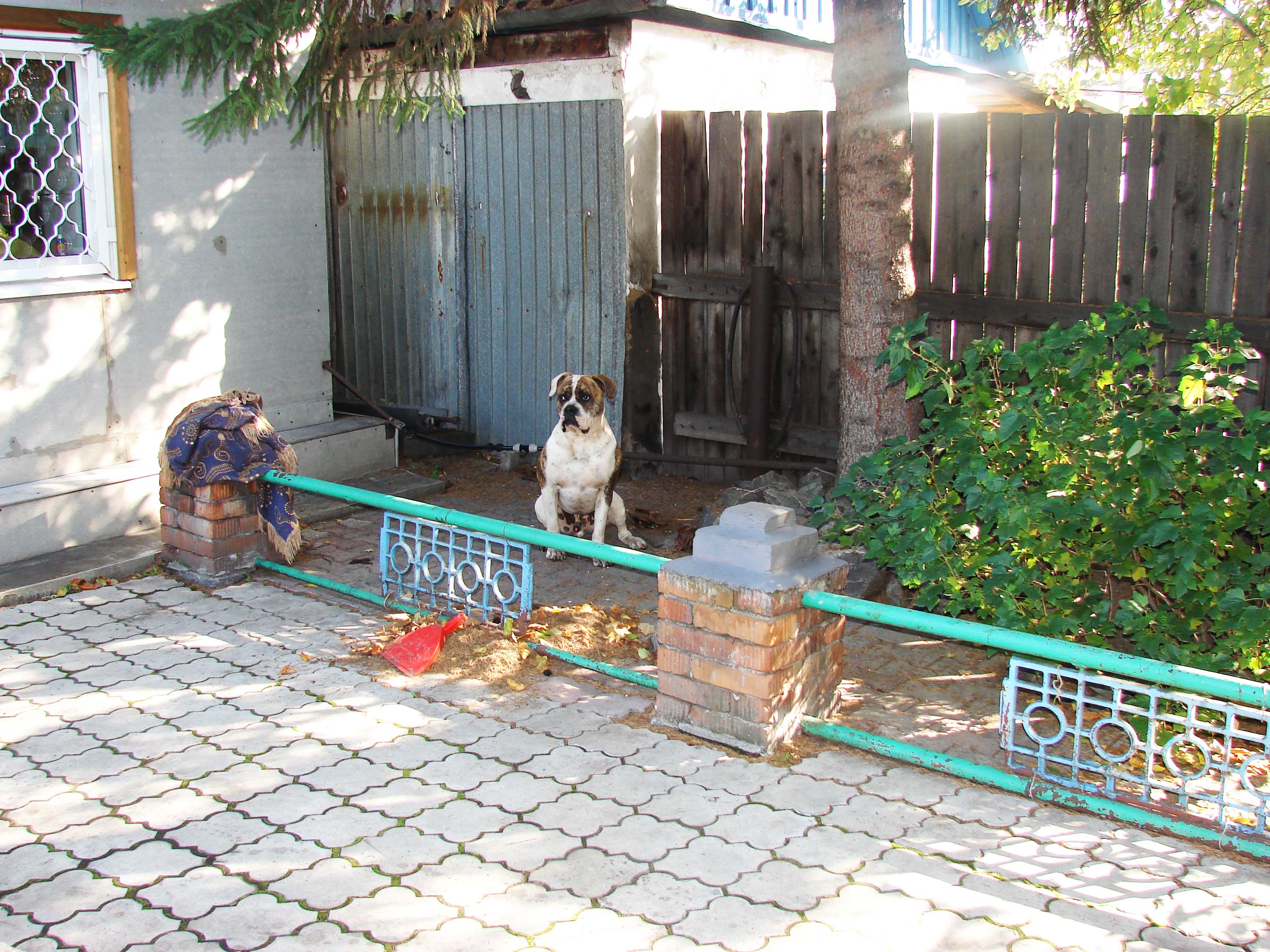 Комментарий к файлу: Но мы уже присмотрели место для новой будки, вот где Закуля сидит, под ёлочками. Только теперь придется еще и огород заборчиком отгораживать)))