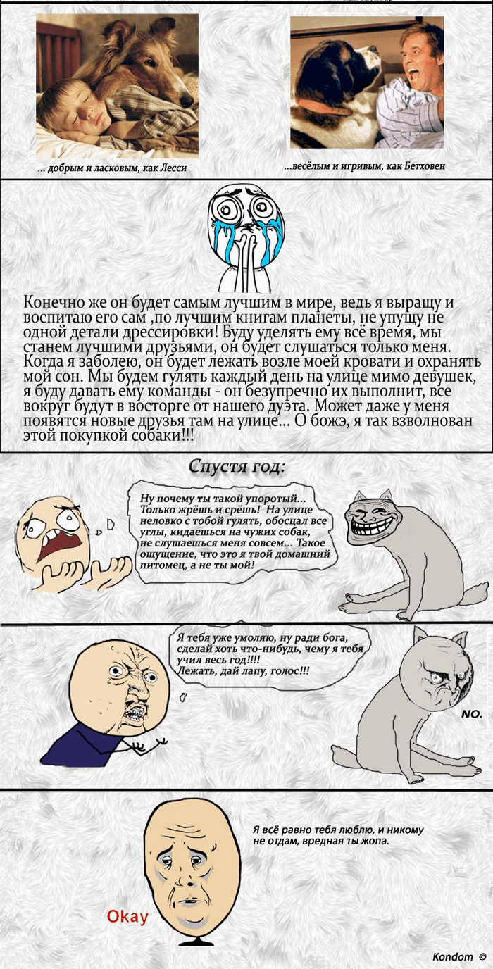 Вы, милые мои, когда тащите себе в кровать собак, и думая, что это "Ваши детки", не забывайте, что правила игры, Вами придуманные, известны только Вам... :) ;)